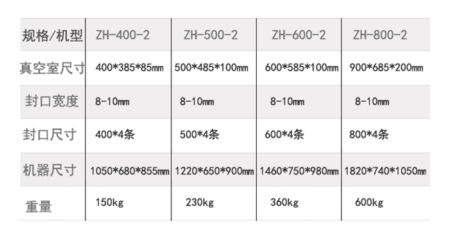 1、雙室真空包裝機采用微電腦控制系統,使包裝參數設定更準確,操作簡單方便。操作者可以根據需要設定抽真空時間和包裝封口時間,以適應不同規格、材質的包裝。